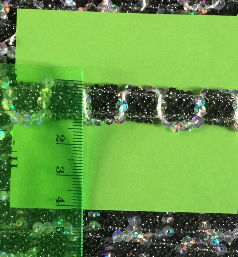 2x Yards Holographic Black and Silver Sequined 14mm Braid Trim