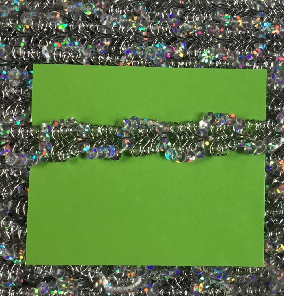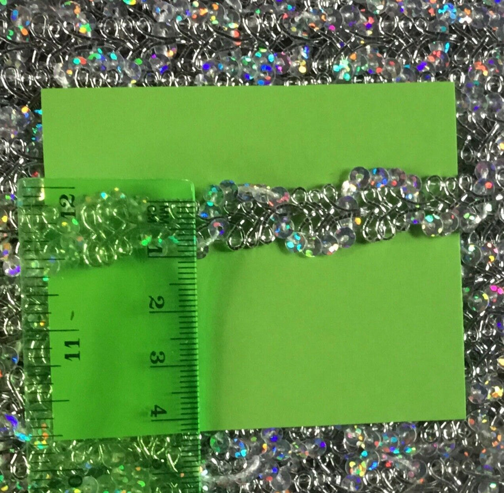 2x Yards Holographic Silver Sequined 12mm Braid Trim