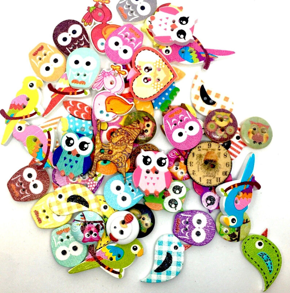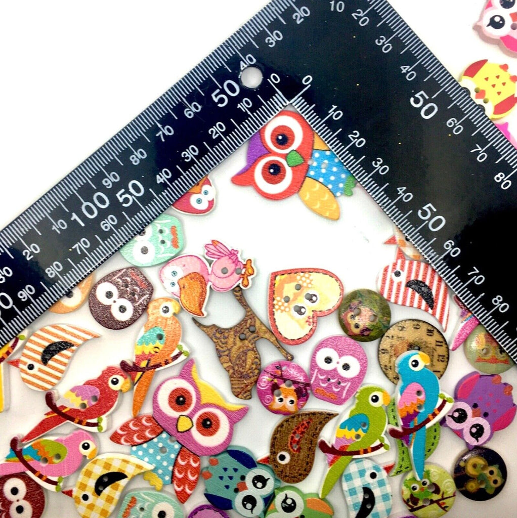 50 pcs of Mix Sizes Mix Colours Birds Design Wood Buttons For Crafts and Sewing Embellishment
