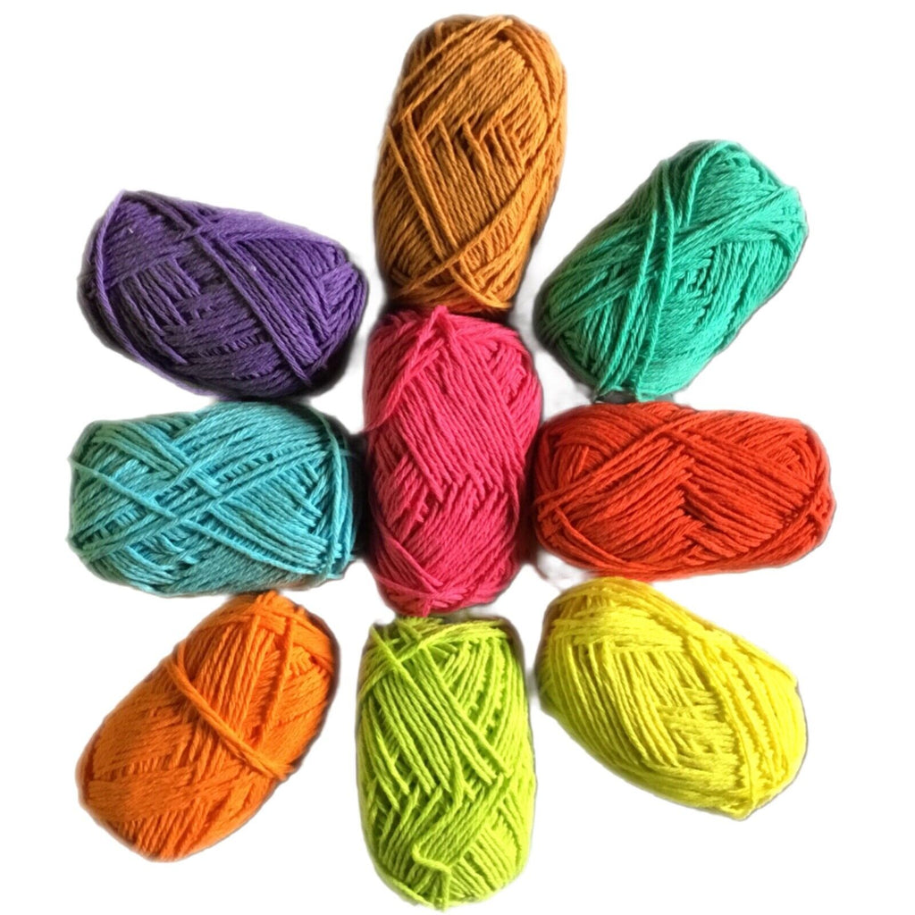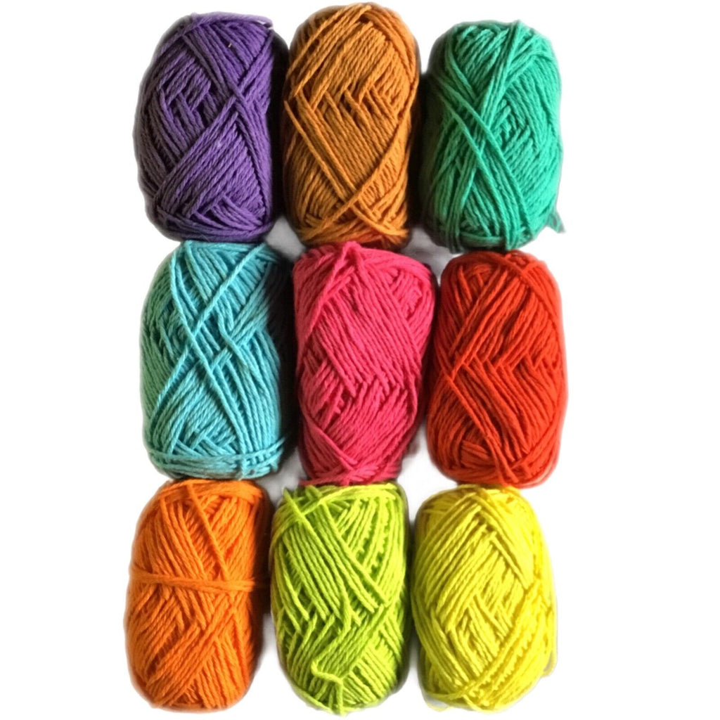 - Sold as 25 grams balls each x 9 multi colour ball includes approximately 57.5 metres per ball of cotton knitting yarn total Approx 517 meters