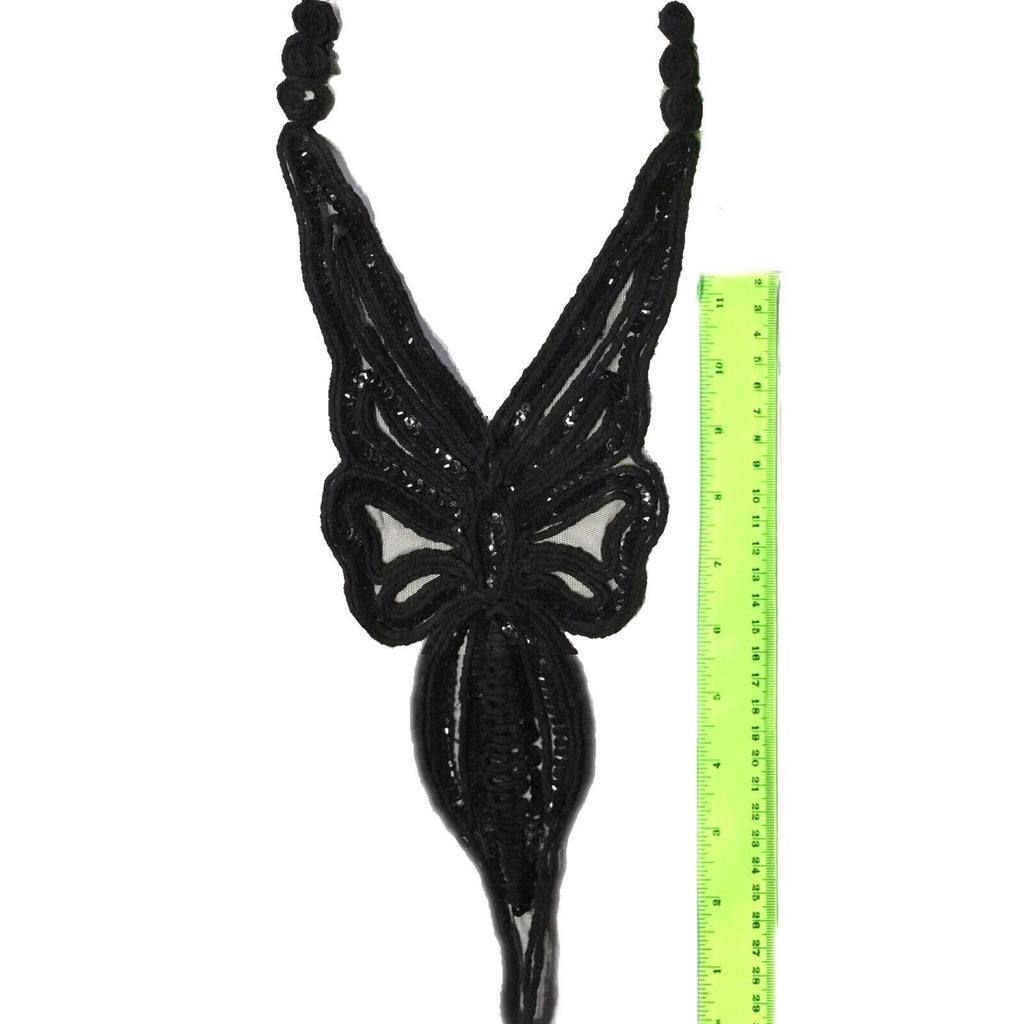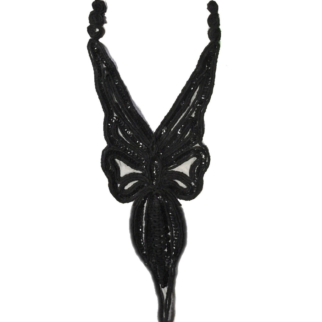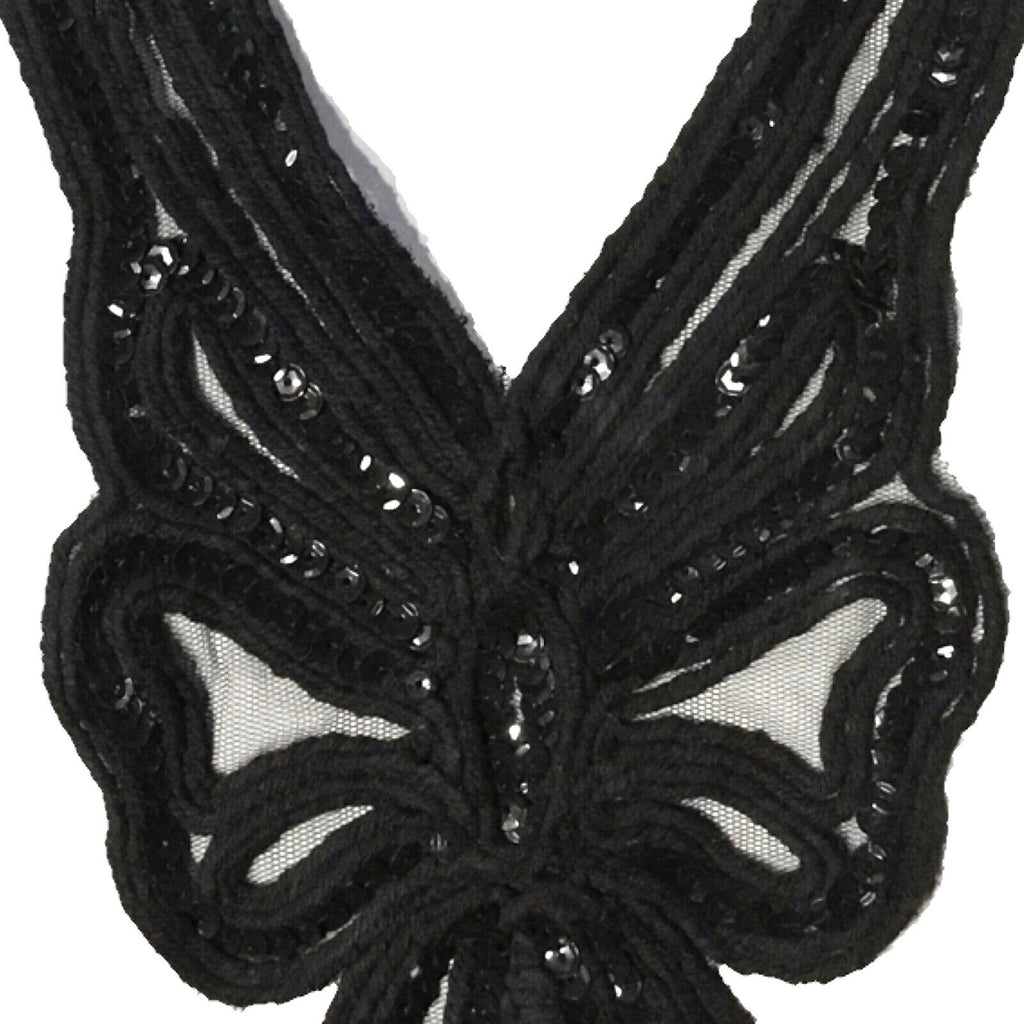 1x Sequined Black Lace Blouse Collar Applique Trim