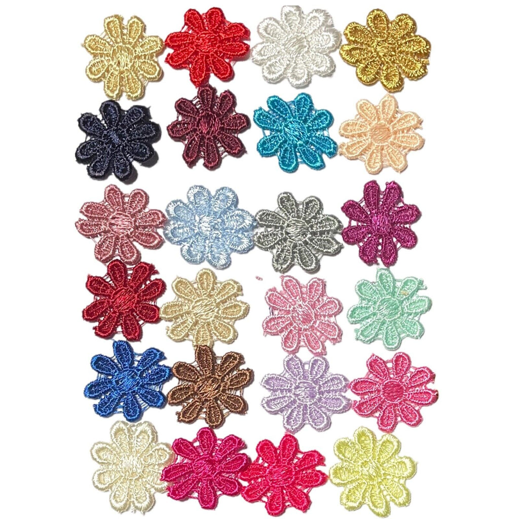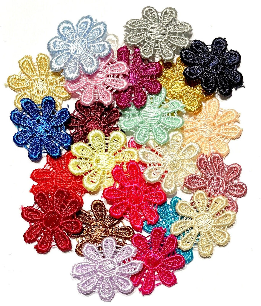 24x Colourful Embroidered 25mm Guipure Daisy Sew On Flower Applique Patch (AB)- A beautiful product that can accentuate all your fashion accessories or cards and scrapbooking