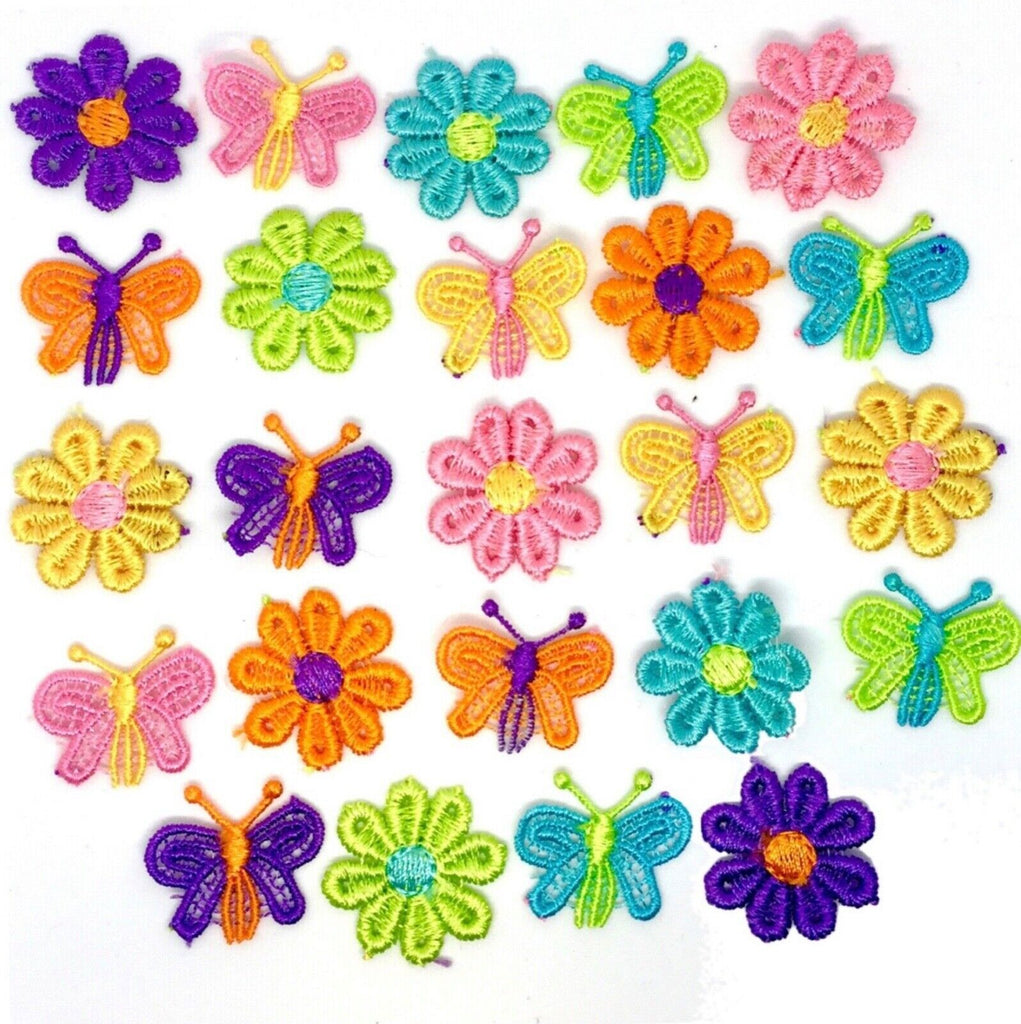 24x Multicolour 25mm Butterflies & Daisy Flower Sew On Applique Patch