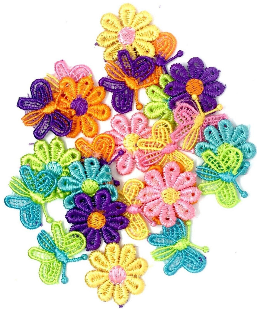 24x Flowers and Butterflies 25mm Embroidered Giupure Sew on Applique Patches- A beautiful product that can accentuate all your fashion accessories or cards and scrapbooking