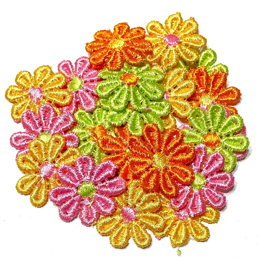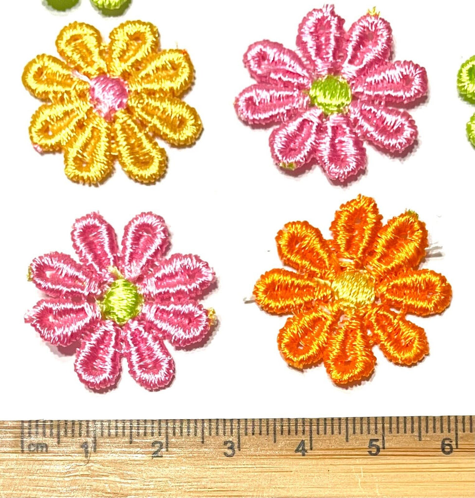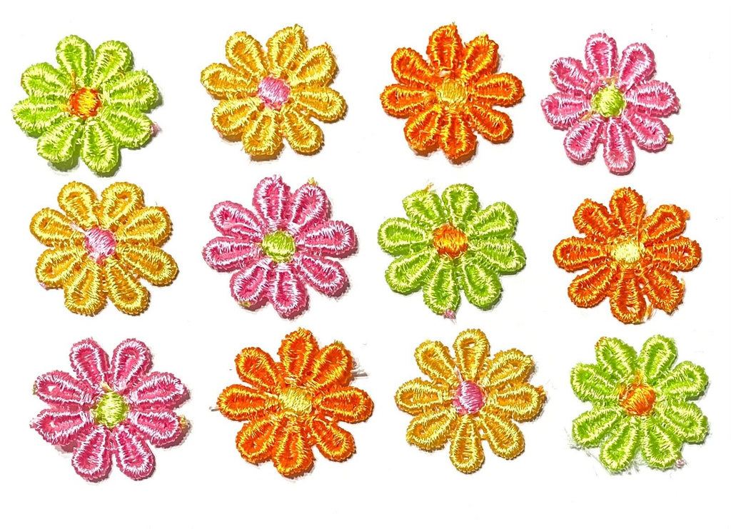24x Multicolour AC09 Daisy Flower Machine Embroidered 25mm Sew-On Applique Patch