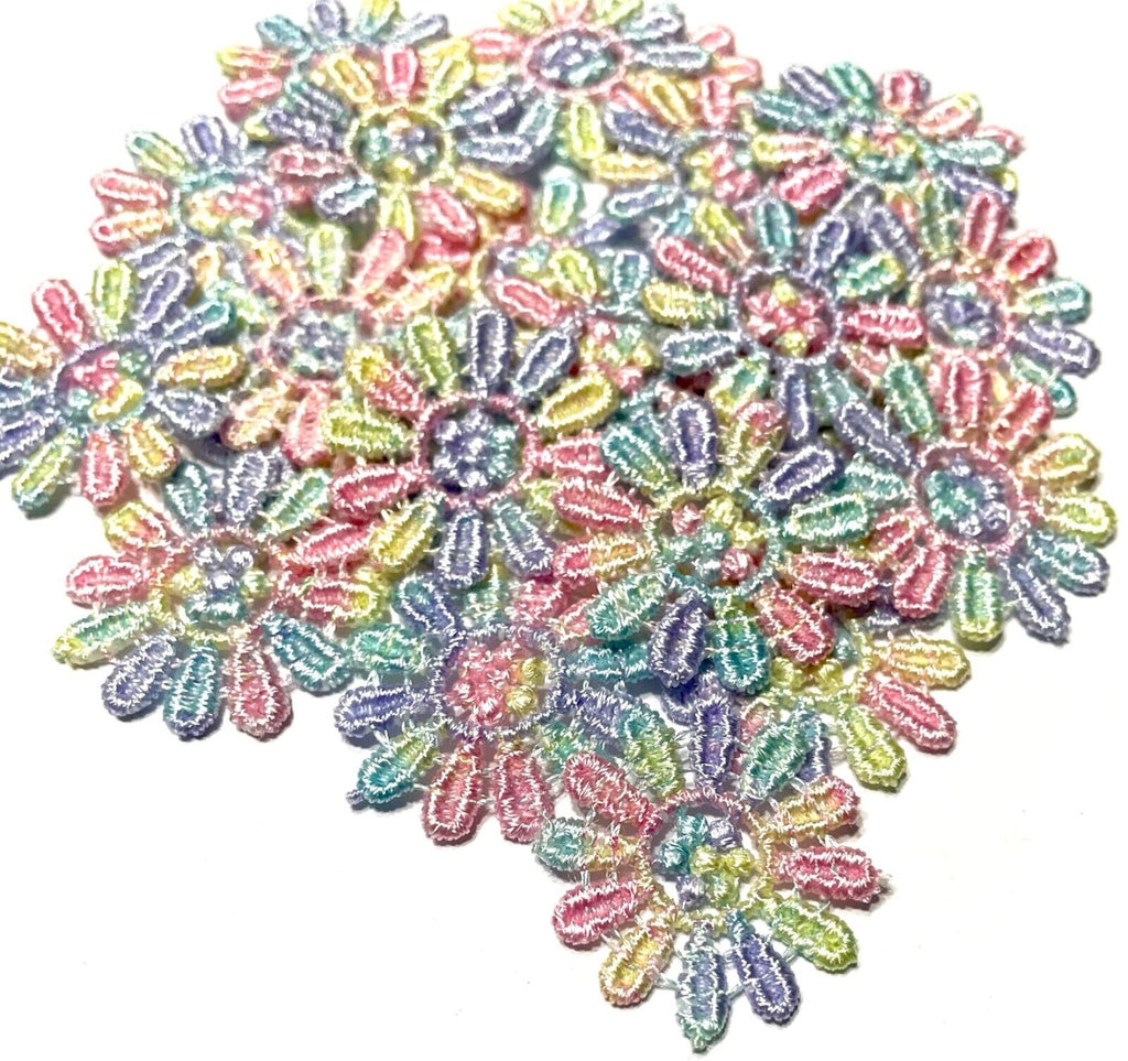24x Pastel Rainbow Colour Daisy Flower 25mm Sew-On Applique