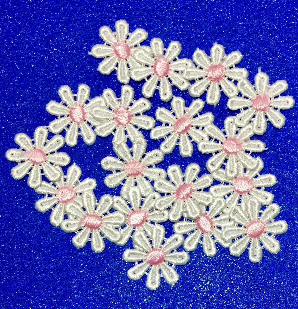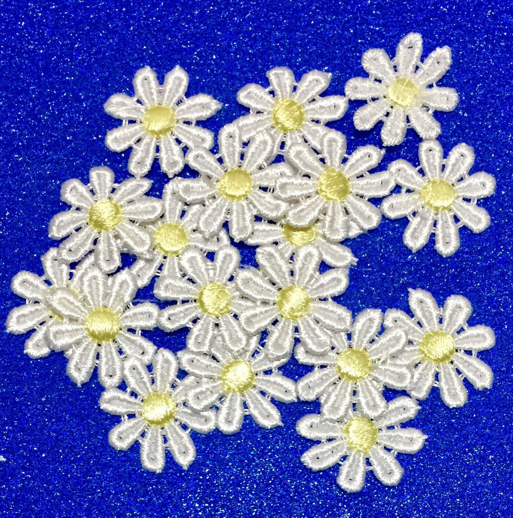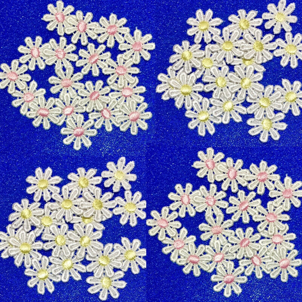 24x White Daisy Flower Coloured Center Embroidered Guipure Sew on Applique Patch
