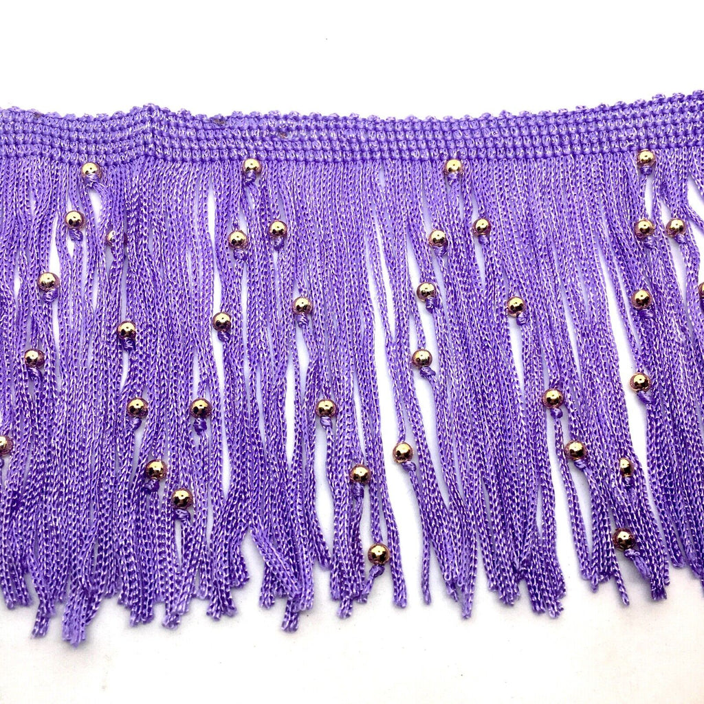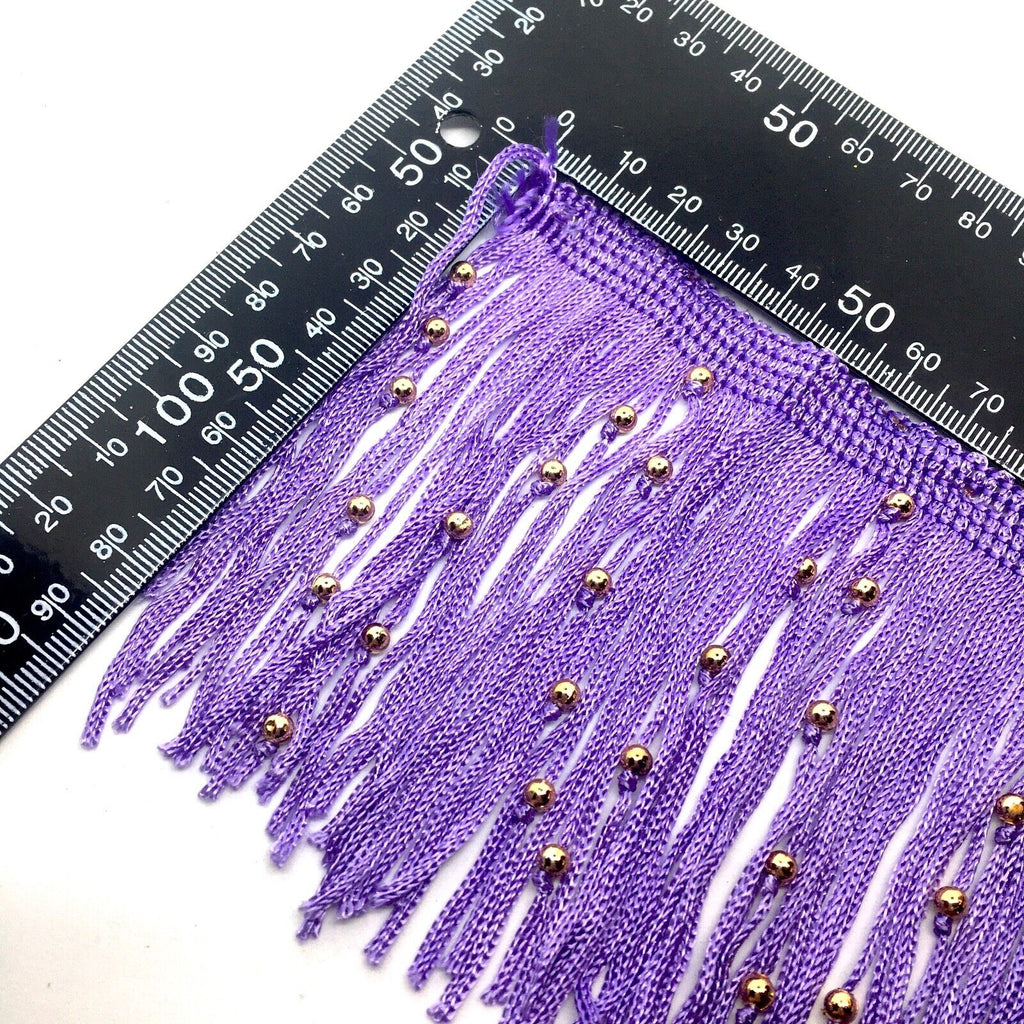 1x Yard Silky Fringing Tassel Trim 90mm Width With Golden Bead Embellishments