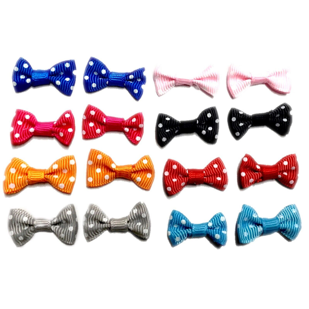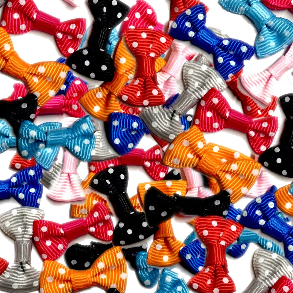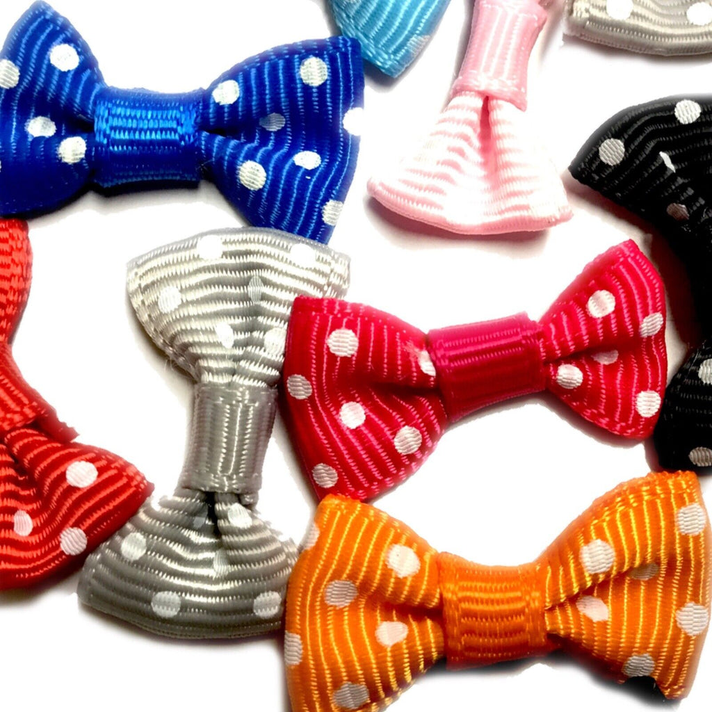16x Multicolour Grosgrain Dotted Small Handmade Bowknot Ribbon EmbellishmentUse these beautiful bowknot to embellish hair accessories, clothing, bags, purses, and many more. Attached through handsewn or glue (not included) depending on what material to put these bowknot.