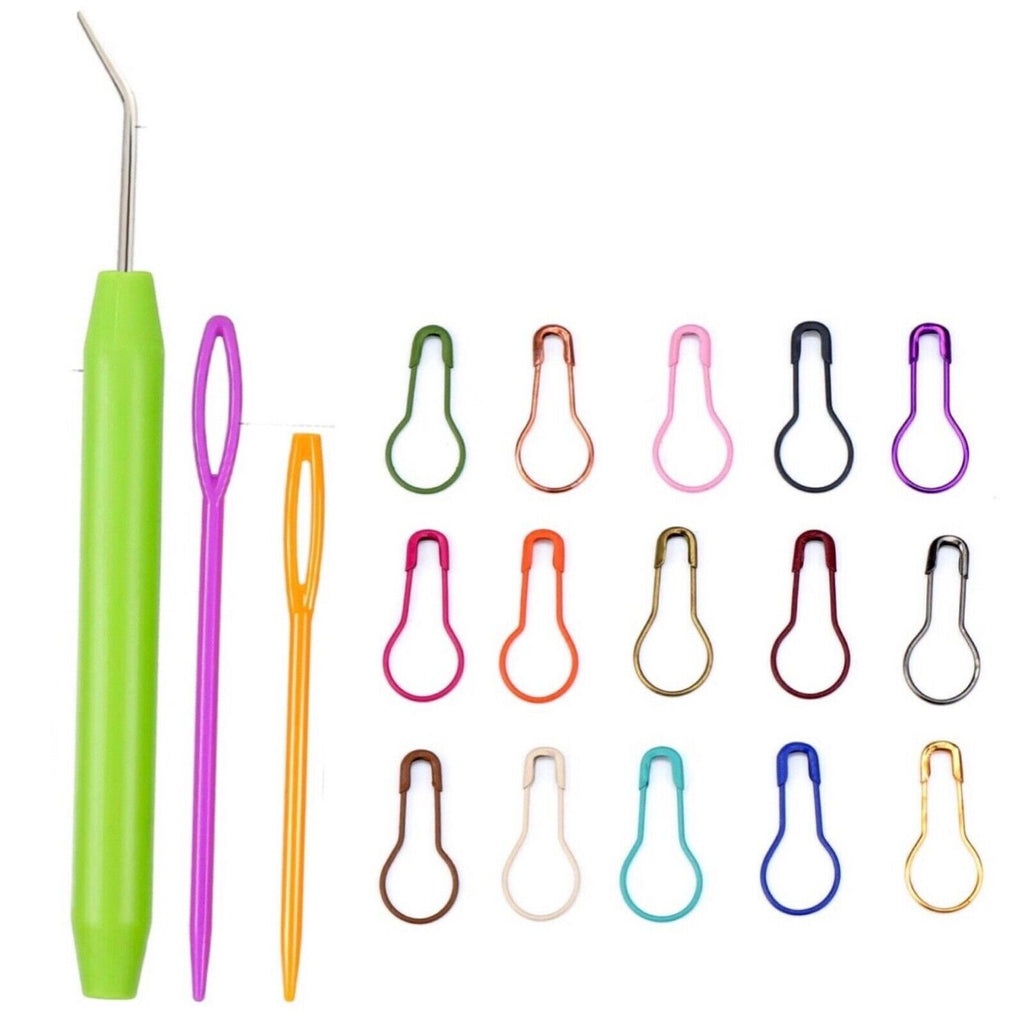 - Quantity:1 set (1 Knit Pick + 2 Plastic Needle + 15 Calabash Metal Stitch Holder