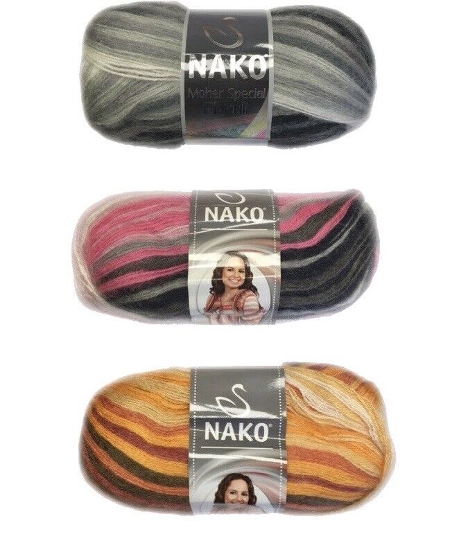 1x Nako Moher Special Ebruli 80% Premium Acrylic 10% Mohair 10% Wool 100g