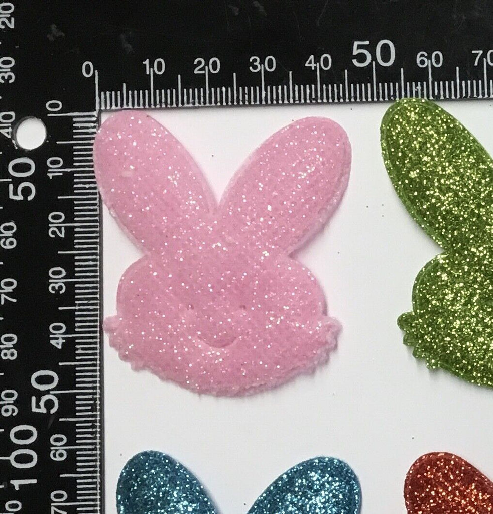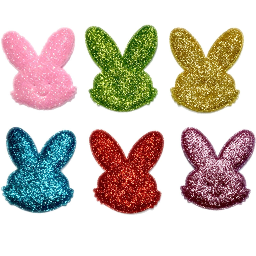6pc Glitter 51mm Bunny w/ Non Woven Fabric Backing & Sponge Inside Sew On Patch