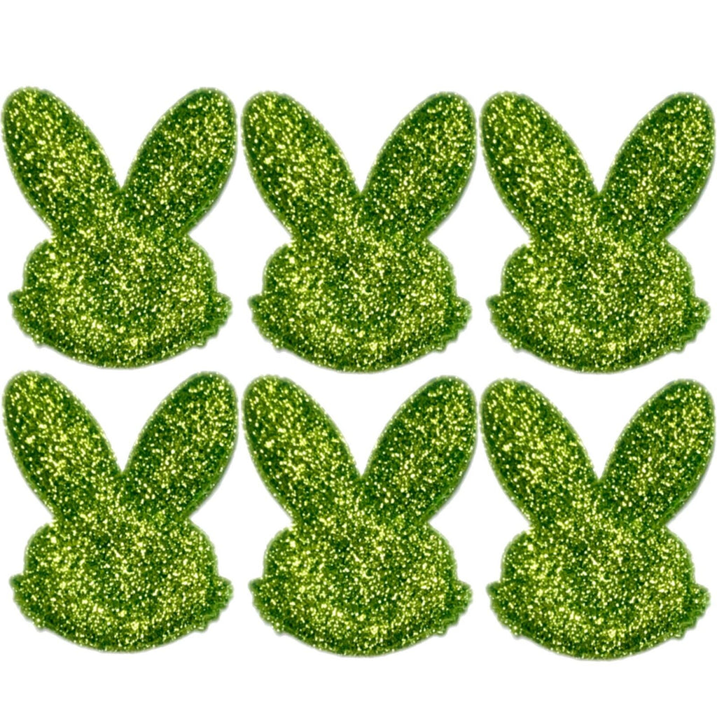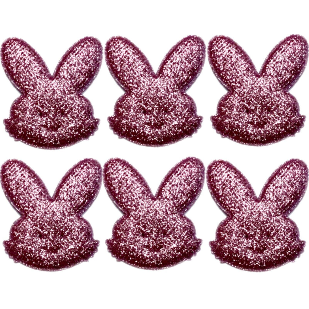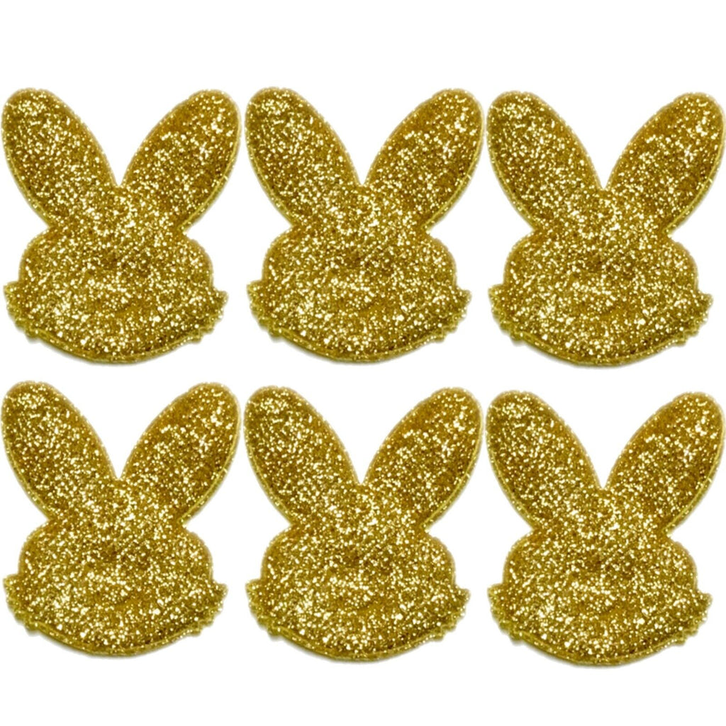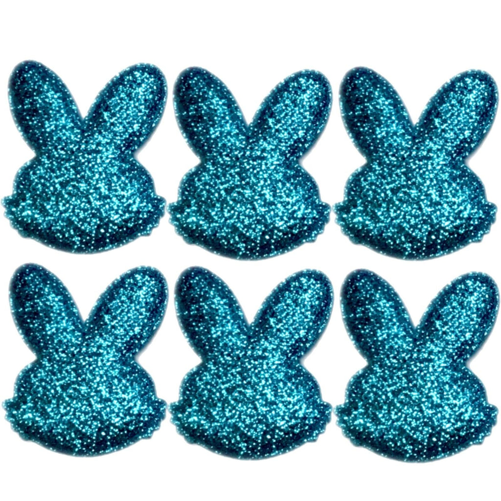 6x Glitter 51mm Bunny w/ Non Woven Fabric Backing & Sponge Inside Sew On Patch